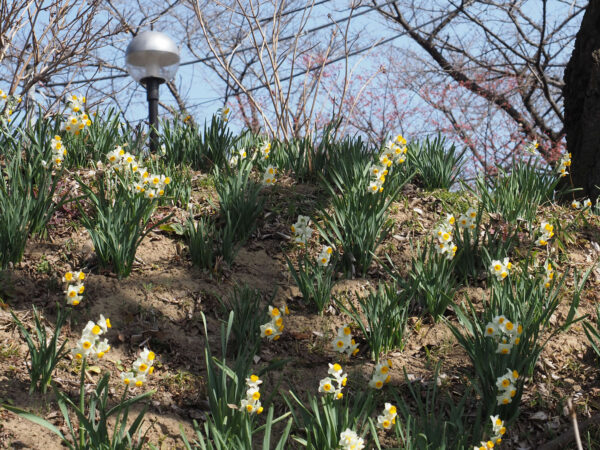 堤を上っていると、水仙が咲いています。