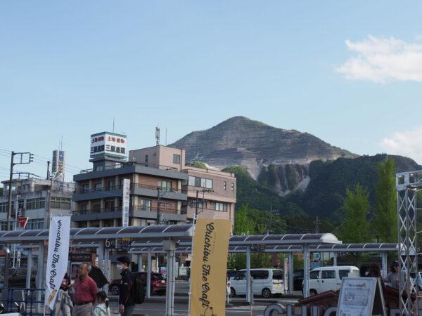 15:25 西武秩父駅着。ゴールデンウィーク中なので、駅中は行楽客で混んでいました。西武秩父駅前よりの武甲山