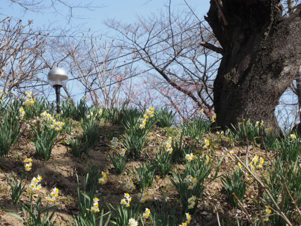 堤を上っていると、水仙が咲いています。