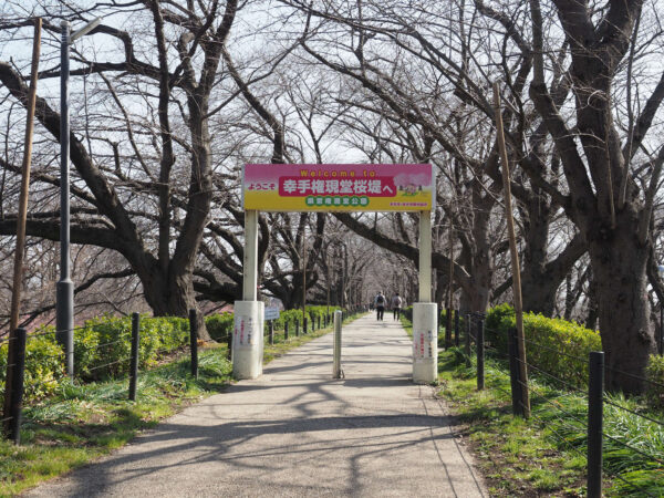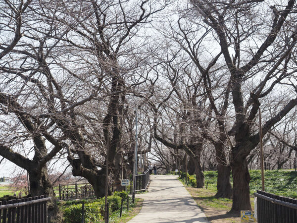 12:06 国道4号から内国府間方向に向かって歩いて行くと、桜堤が見えてきました。もちろん桜は咲いていません。